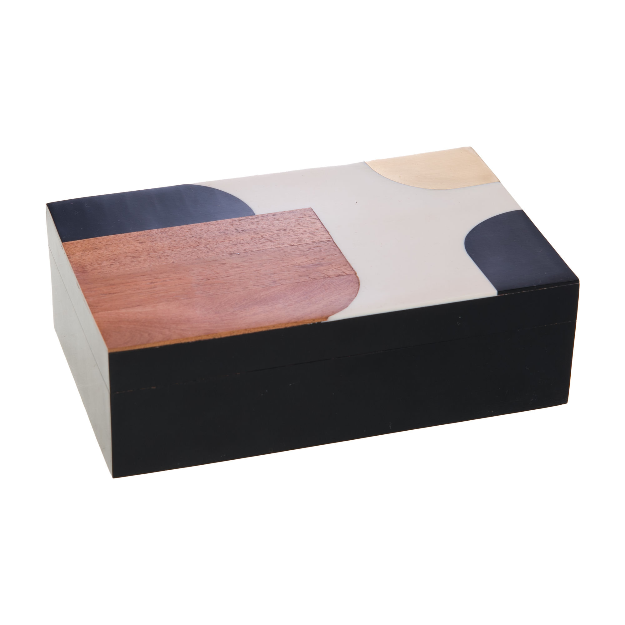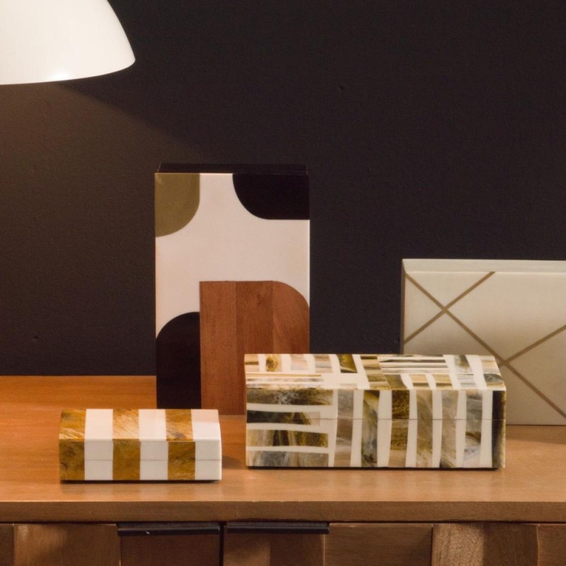 Élégante et contemporaine, la boîte décorative Clair Obscur apporte une touche graphique et raffinée à votre intérieur. Conçue en résine, elle se distingue par son jeu de contrastes entre teintes sobres et notes boisées, offrant un design original et moderne. Avec ses dimensions de 20 x 13 x 6,5 cm, elle est idéale pour ranger vos petits objets (bijoux, clés, accessoires) tout en décorant subtilement une console, une table basse ou une étagère. Plus qu’un simple rangement, cette boîte devient un véritable objet déco qui s’intègre parfaitement dans un intérieur chic, moderne ou design.