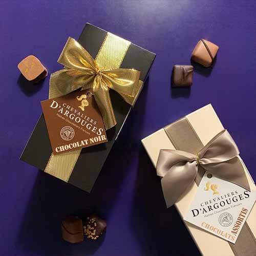 enrobés de chocolat noir de cacao et chocolat au lait de cacao Chocolat bio et normand – Des Chevaliers d’Argouges