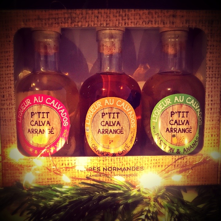 Calvados arrangés – Liqueurs 20 cl Boisson alcoolisée 100% normande réalisée avec une macération artisanale de fruits frais sans ajout d’arômes, ni colorants à servir bien frais ! 25% alc. vol. 3 calvas arrangés dans ce coffret Ananas Passion Café / Orange Fraise / Framboise l’abus d’alcool est dangereux pour la santé à consommer avec modération
