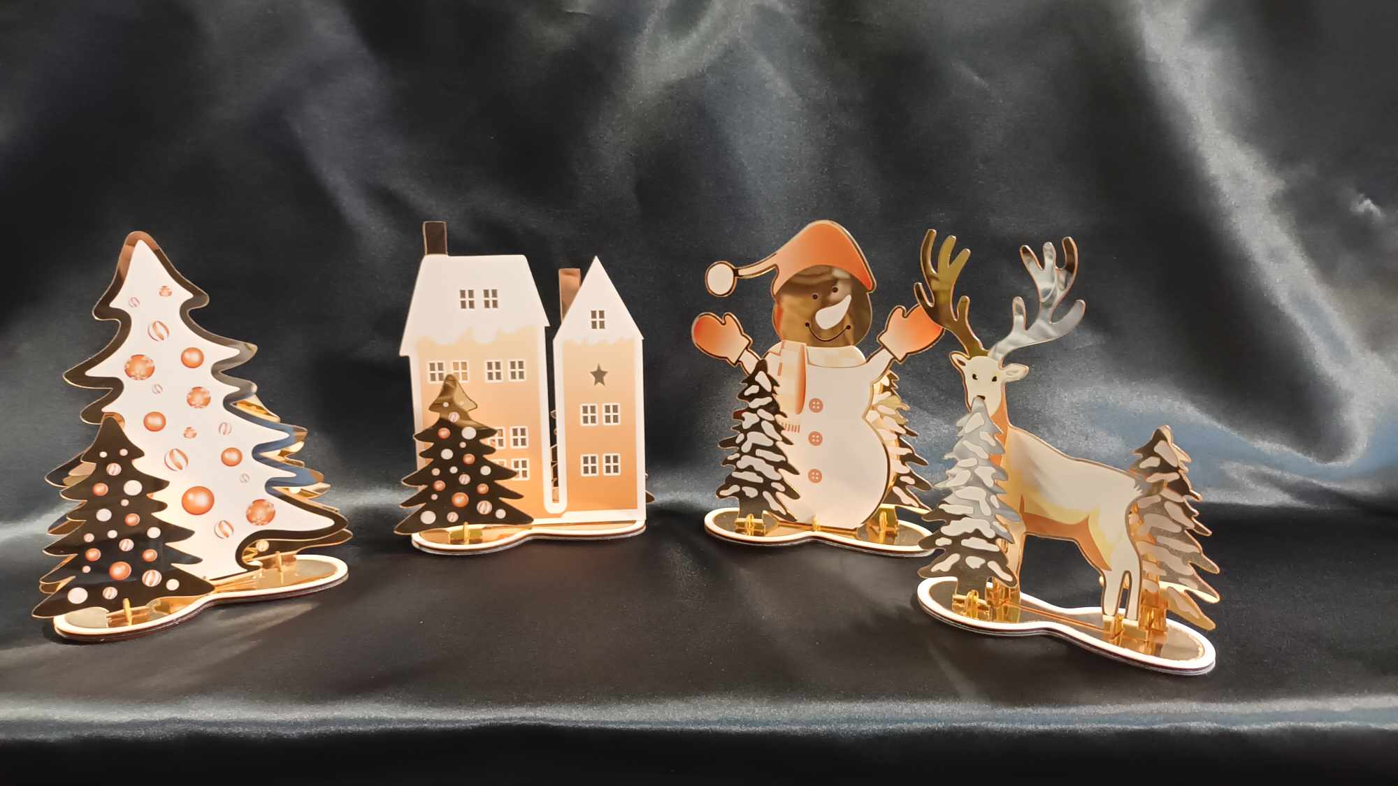 Décorations Noël effet miroir or Différents décors de 20 cm de hauteur.