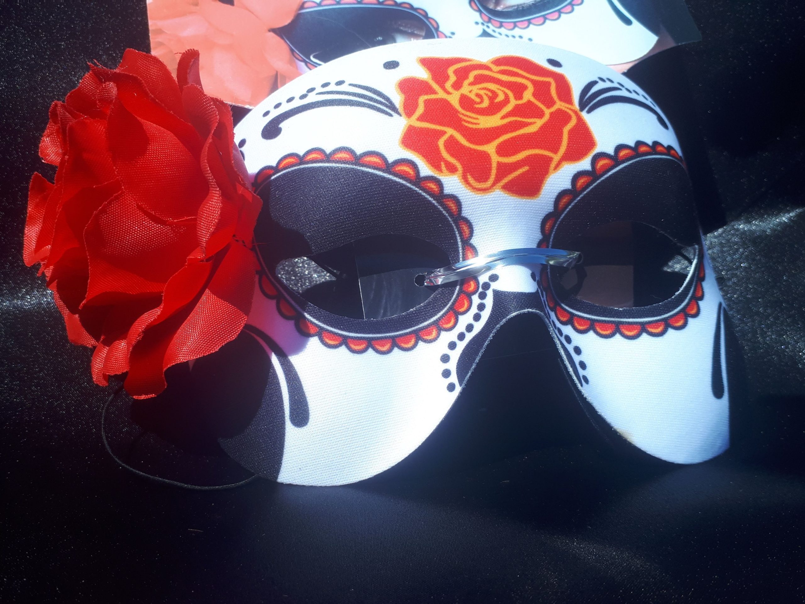 Demi masque Los dios de los muertos, avec rose rouge