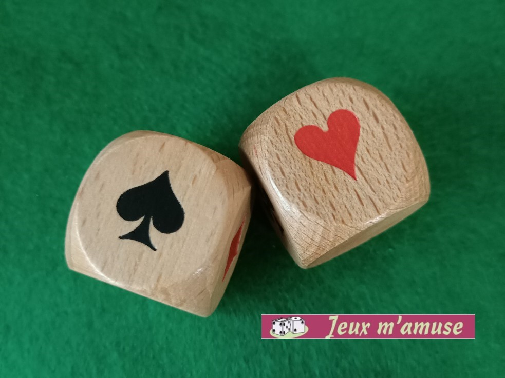 Dés atout en bois permettant de savoir quel atout est joué en belote.