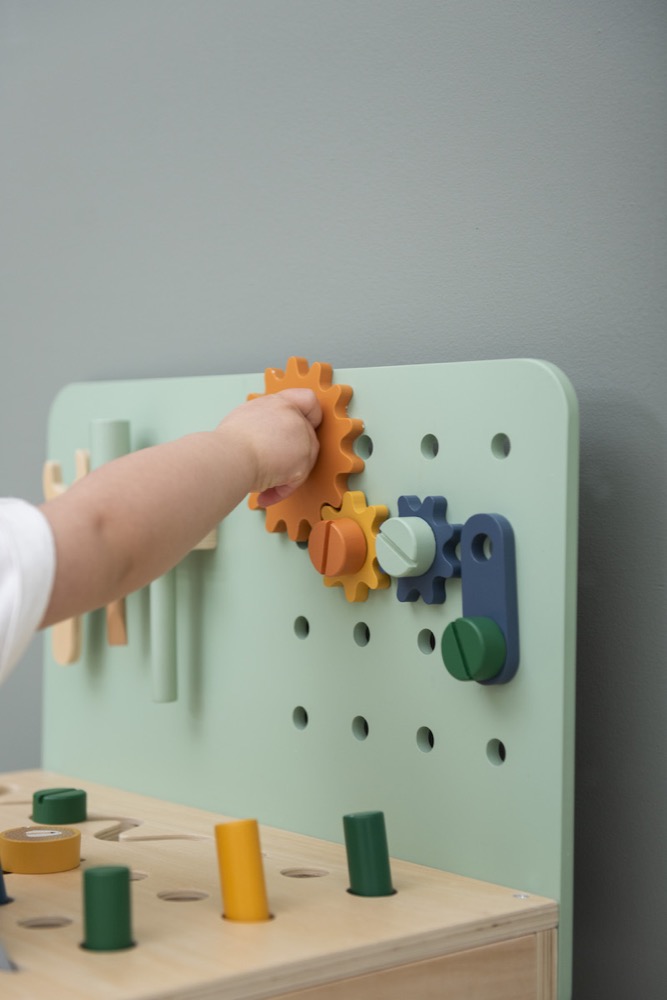 Faites découvrir à votre enfant les bases du bricolage grâce à l’Etabli en Bois de Trixie Baby. Engrenage, boulons, écrous, vis ou encore clous pourront être assemblés à l’aide du tournevis, de la clé et du marteau. Avec ce nouveau jouet, votre p’tit bricoleur développera sa motricité fine, son sens de l’observation et ses capacités de réflexion. Il pourra s’atteler à toutes sortes de réparations ou de créations.