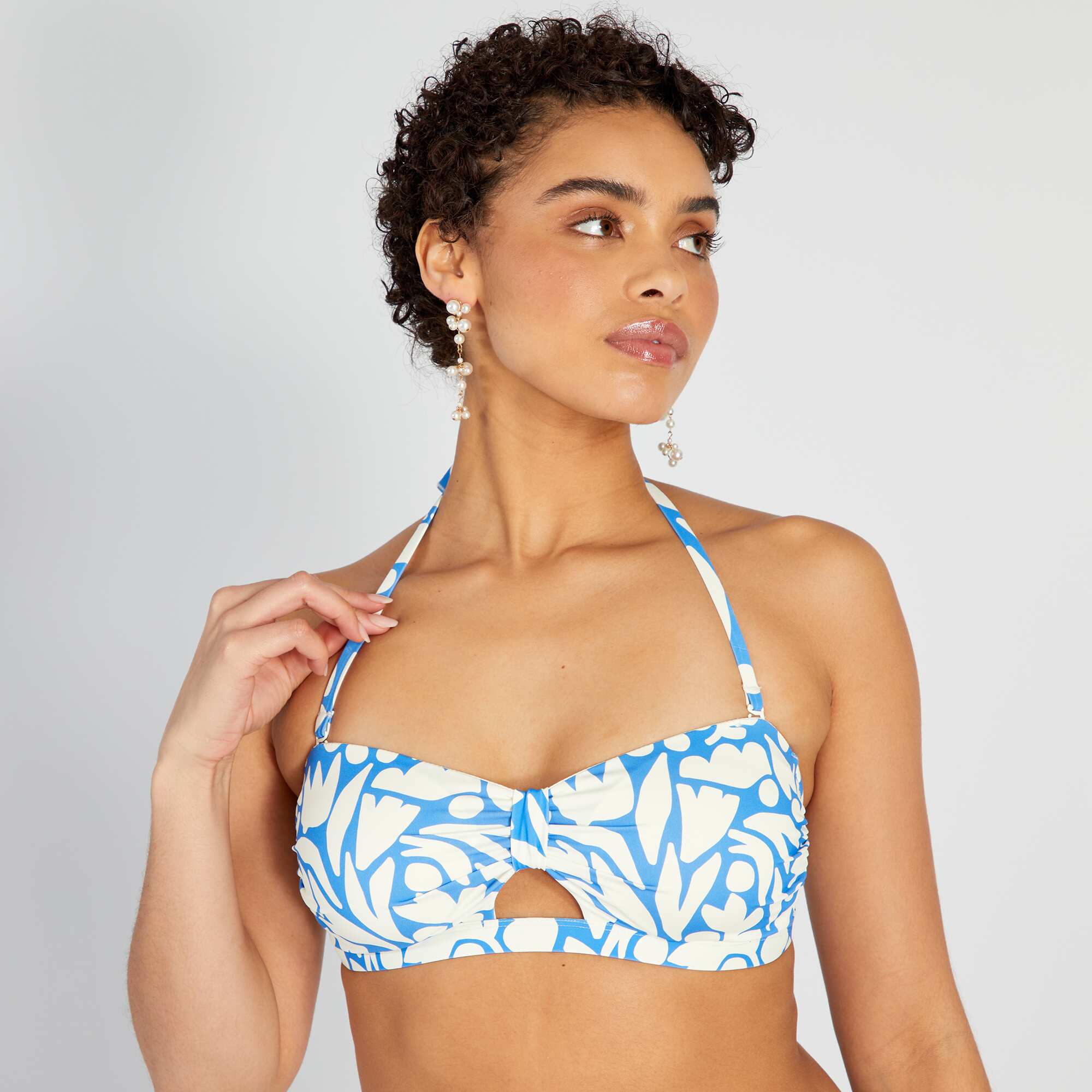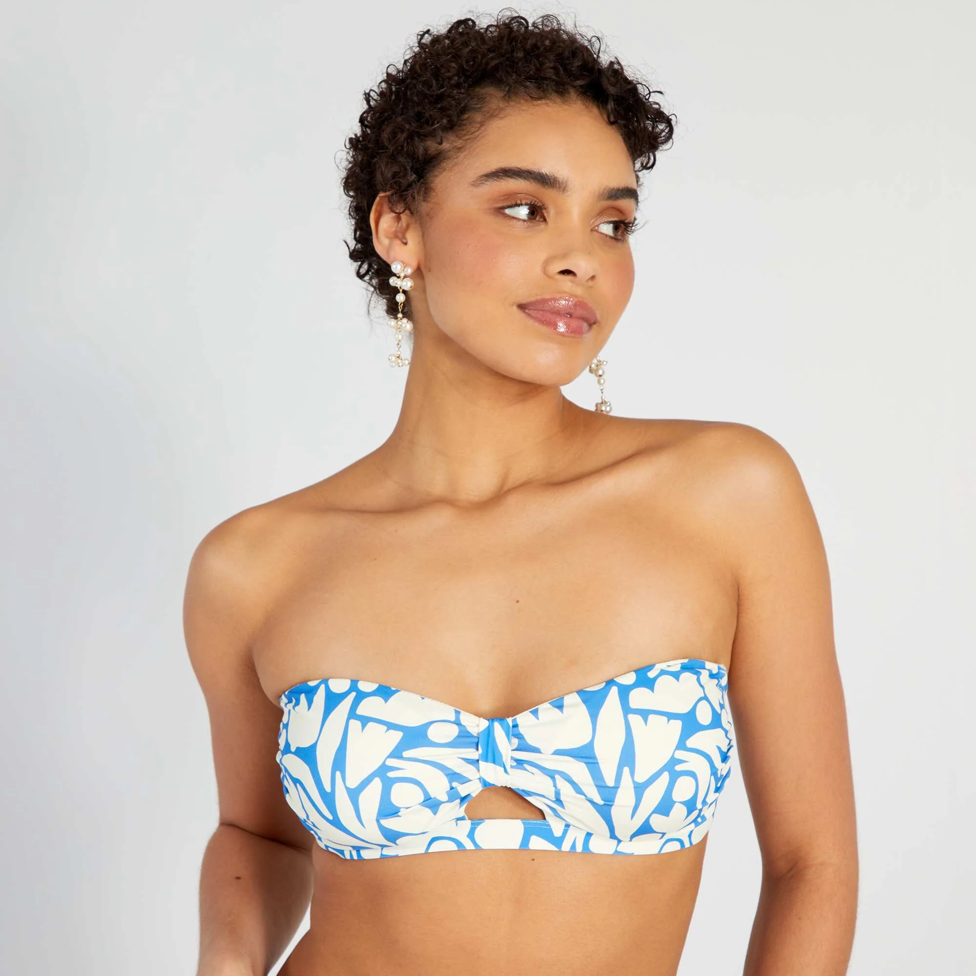 Haut de maillot de bain bandeau imprimé Blanc/bleu