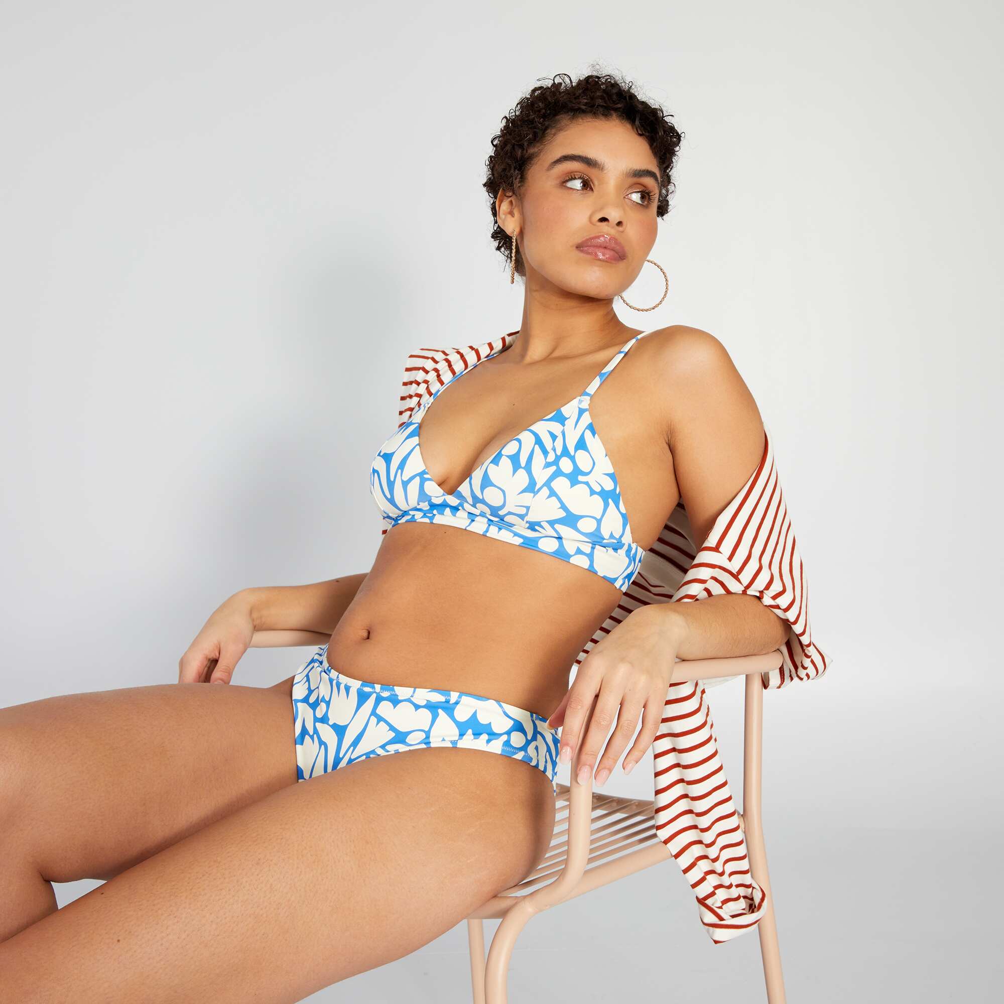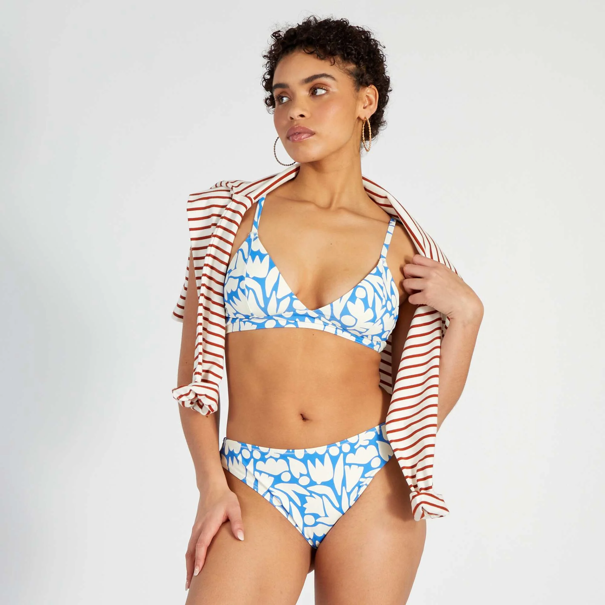 Haut de maillot de bain triangle imprimé organique Blanc/bleu