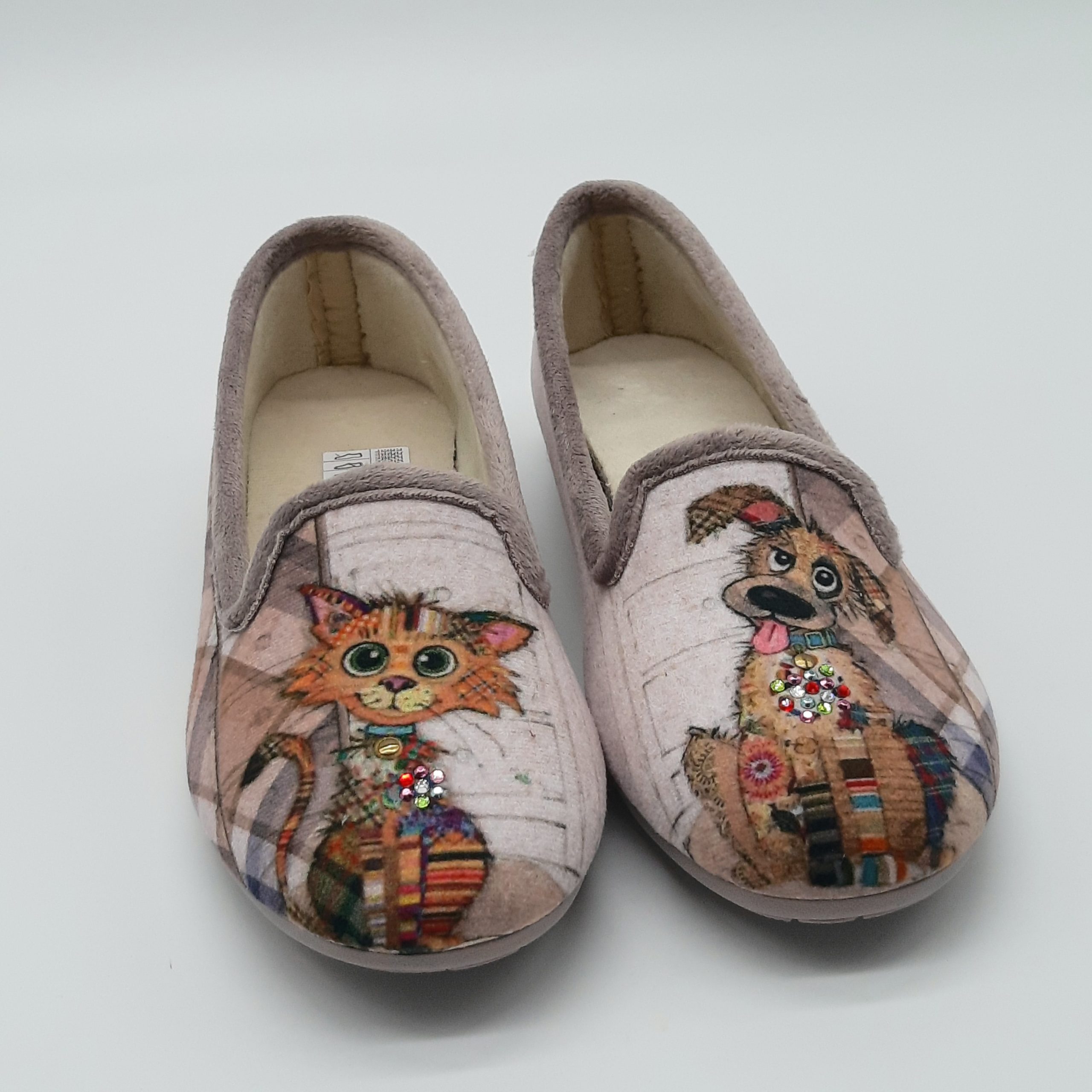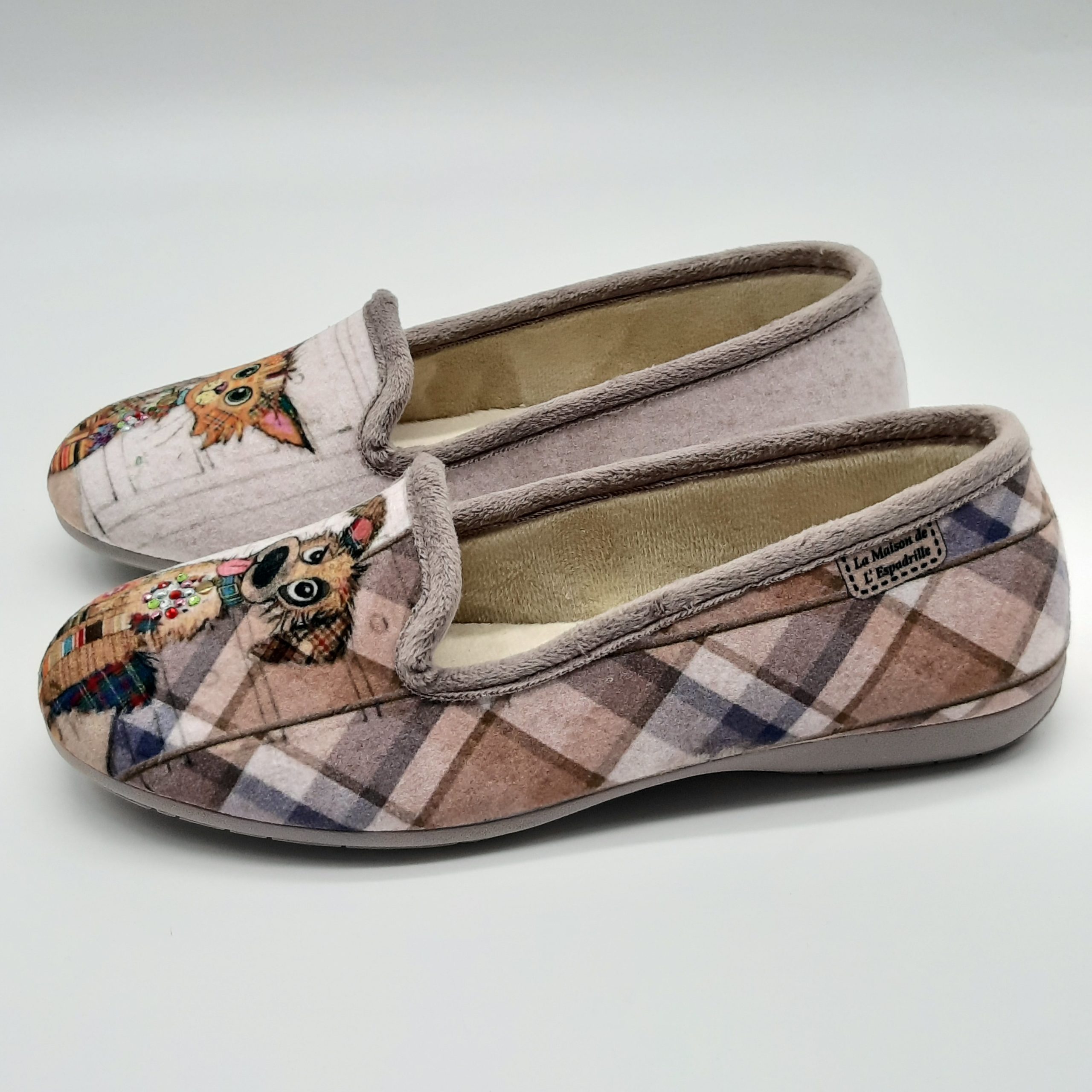 COULEUR : beige / taupe / imprimé carreaux / motifs chat et chien