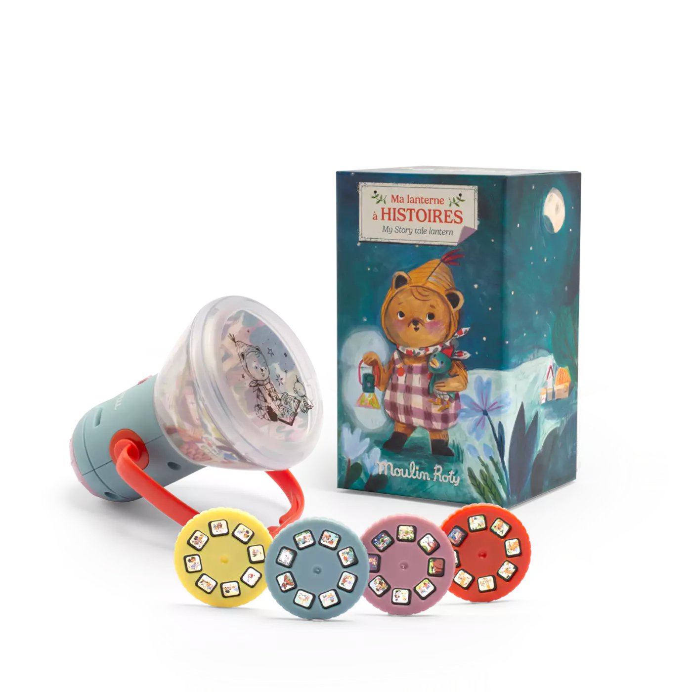 Les disques de lampe à histoires Moulin Roty sont compatibles avec cette lanterne, vous pourrez donc y ajouter toutes les histoires qui vous plaisent!