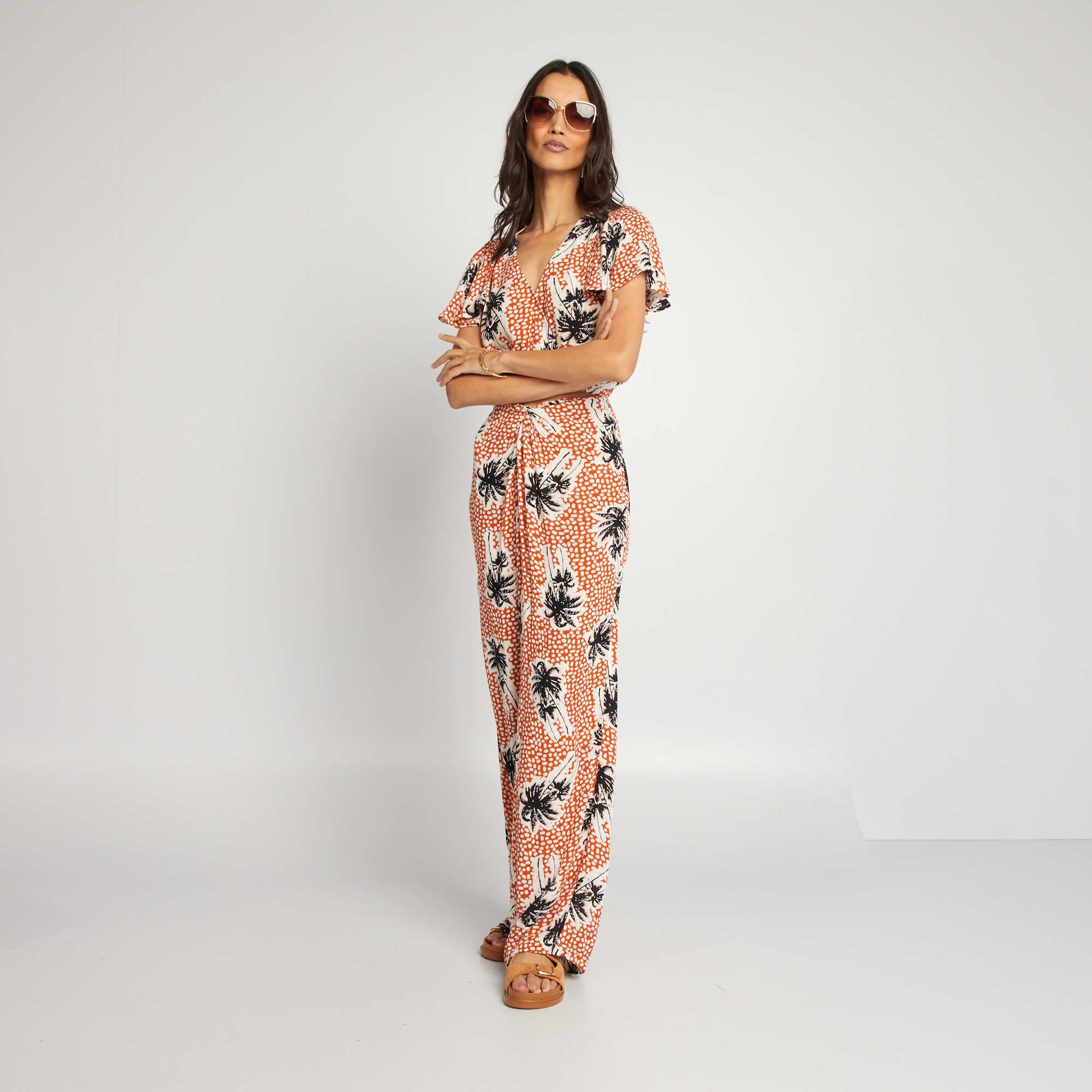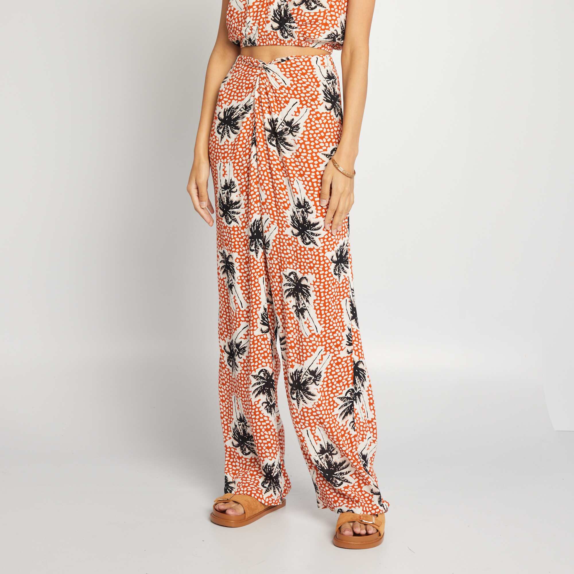 Pantalon large élastique à taille fantaisie Imprimé