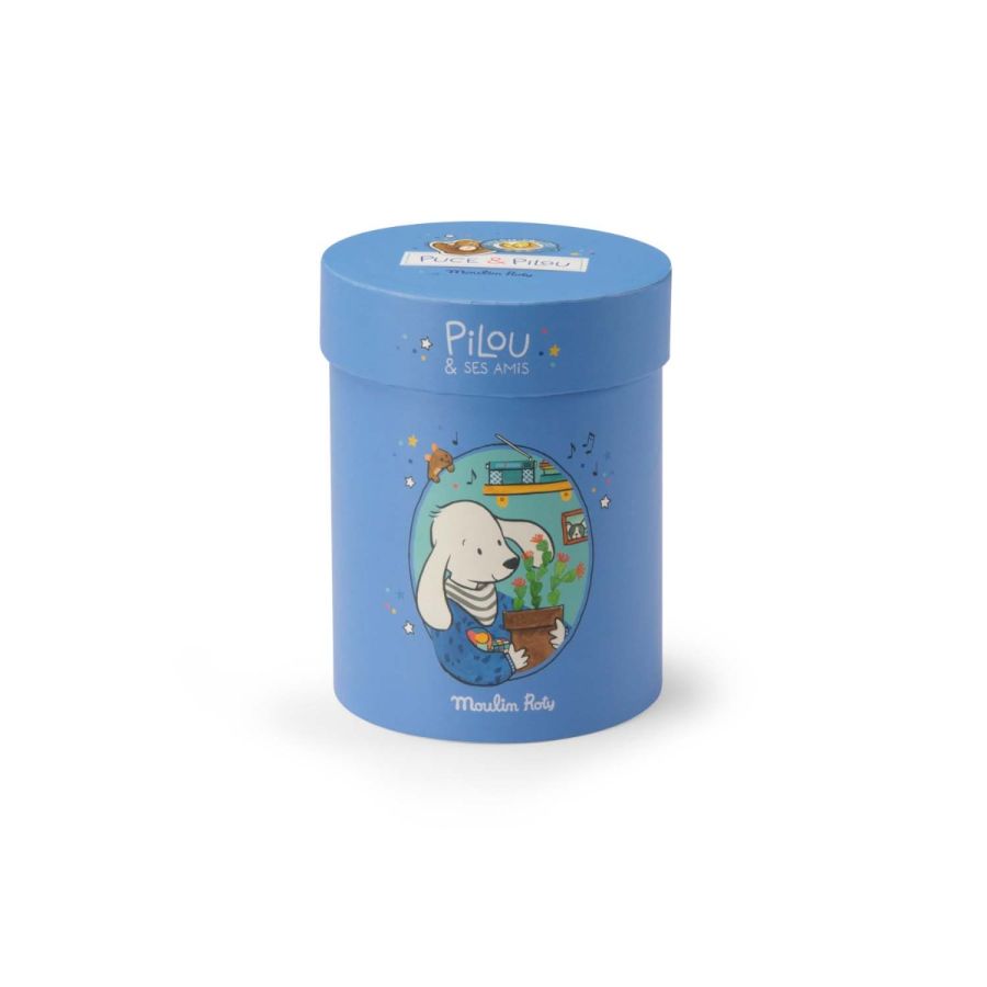 Découvrez la peluche Poupée chien Pilou bleu de la collection Puce & Pilou de Moulin Roty, un peluche de 30 cm à offrir en cadeau de naissance dans sa boite cadeau. Une peluche de chien toute douce pour câliner votre bébé. Tendre Pilou,le compagnon parfait pour des câlins tout doux ! Il peut se transporter partout grâce à sa taille idéal pour les bras des tout-petits. Pilou attend sagement dans une boite toute ronde joliement illustrée. Un cadeau de naissance parfait dans une magnifique boite cadeau illustrée.