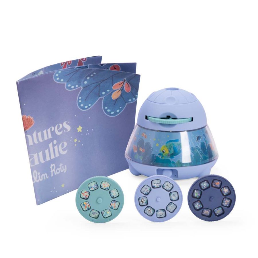 Découvrez le Projecteur des animaux de la collection Les aventures de Paulie de Moulin Roty, 24 images à projeter pour stimuler l’imaginaire en se racontant de belles histoires accompagné de Paulie et ses amis. La veilleuse intégrée illumine un paysage marin et s’éteint après 15 minutes. Un cadeau original pour les enfants à partir de 3 ans qui contribuera à l’atmosphère de la chambre de votre enfant et qui se charge par USB.