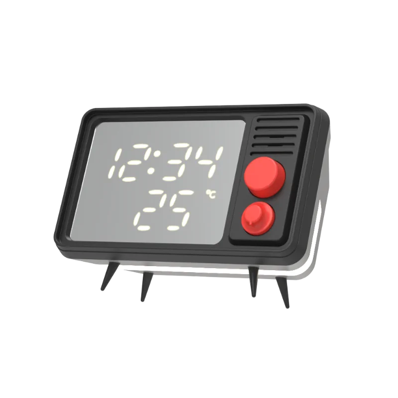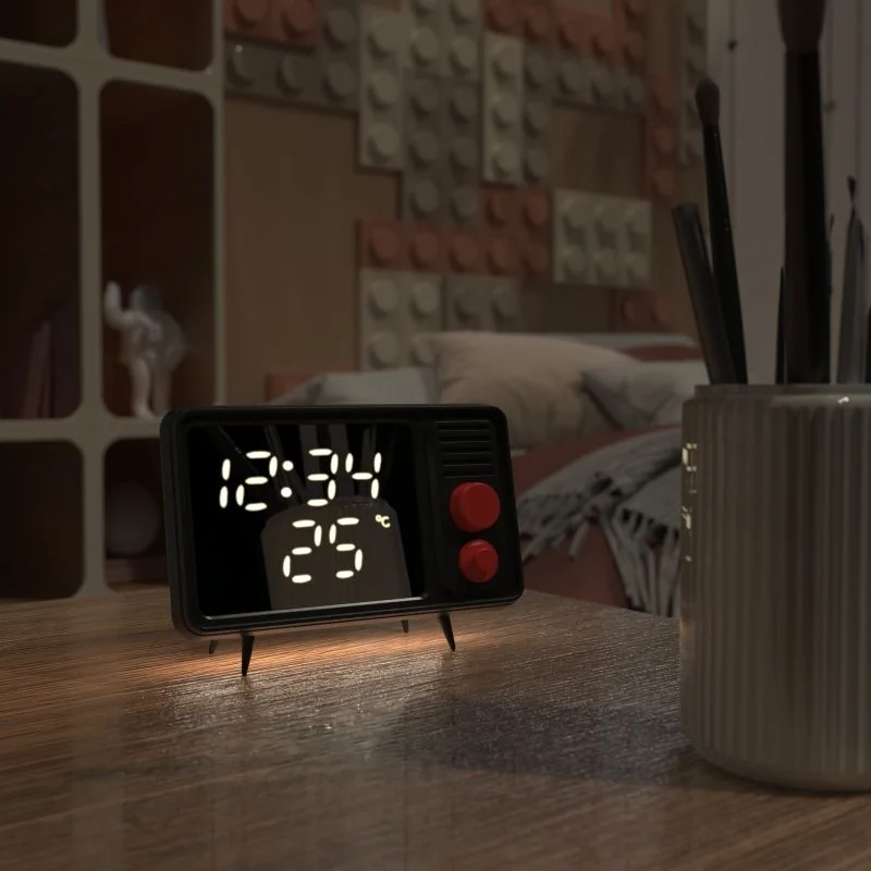 Le Réveil TV Rétro en gris signé Mobility On Board est le parfait mélange entre nostalgie et innovation moderne. Inspiré par le design iconique des vieux téléviseurs des années 80, ce réveil va non seulement réveiller votre nostalgie, mais aussi ajouter une touche unique à votre chambre. Avec lui, chaque matin devient un voyage dans le temps.