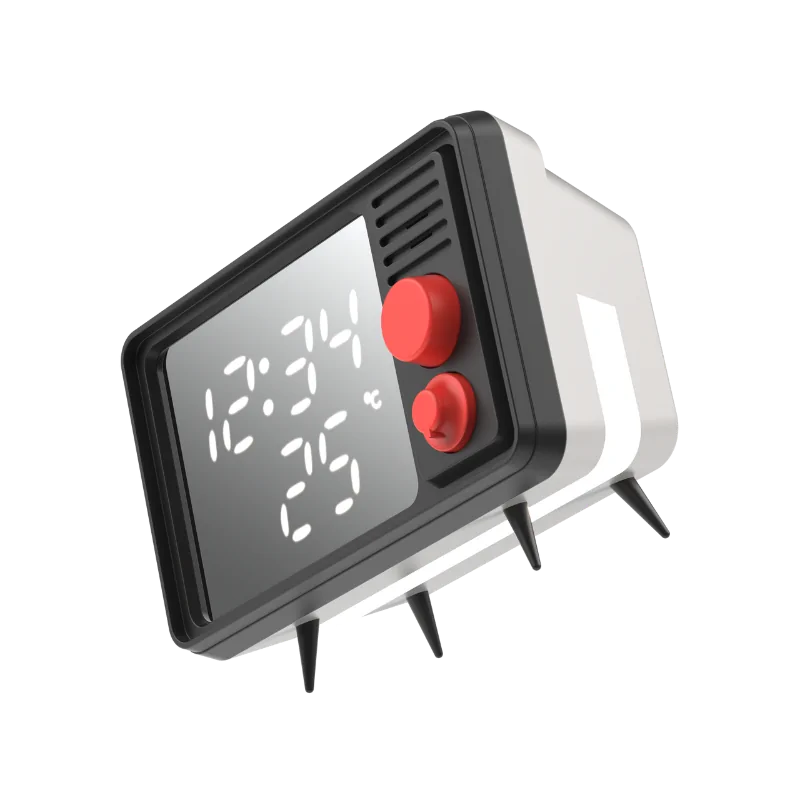 Pour vous offrir un réveil en douceur, comptez sur ses deux alarmes et ses 5 sonneries au choix. L’heure, la date et la température s’affichent clairement sur l’écran digital. Mais ce n’est pas tout ! Le réveil TVC-80 est également équipé d’une veilleuse dont la luminosité peut être ajustée grâce à des boutons pratiques. Si cela ne suffit pas à vous séduire, sachez que notre nouveau réveil est également doté d’un détecteur de mouvement unique en son genre.