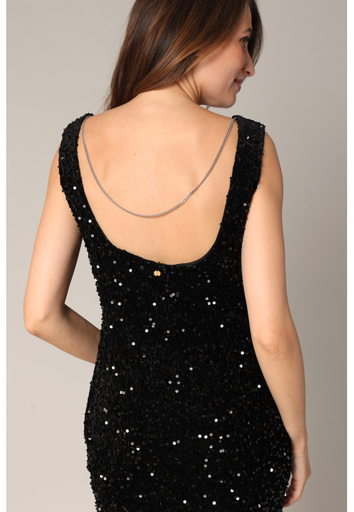 Robe à paillettes avec dos échancré et élégant détail de chaîne