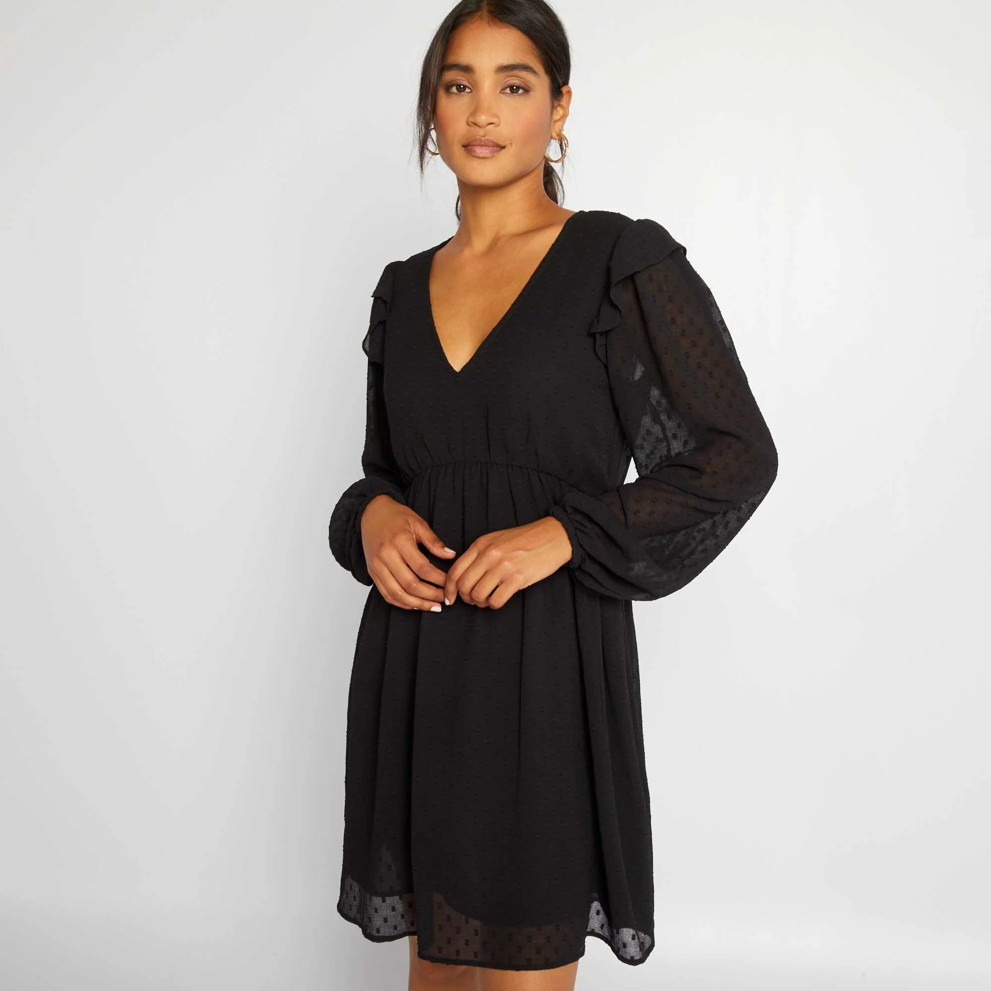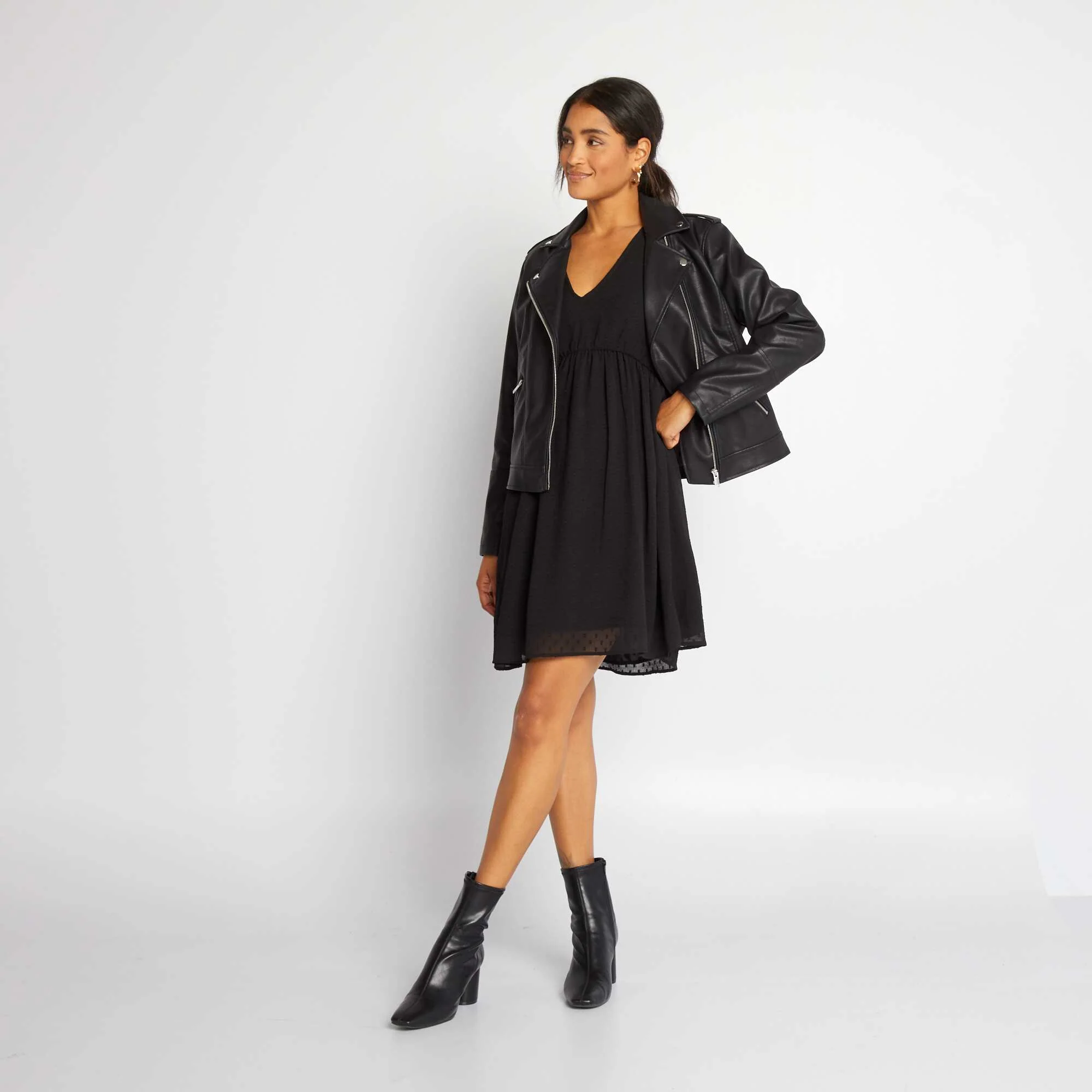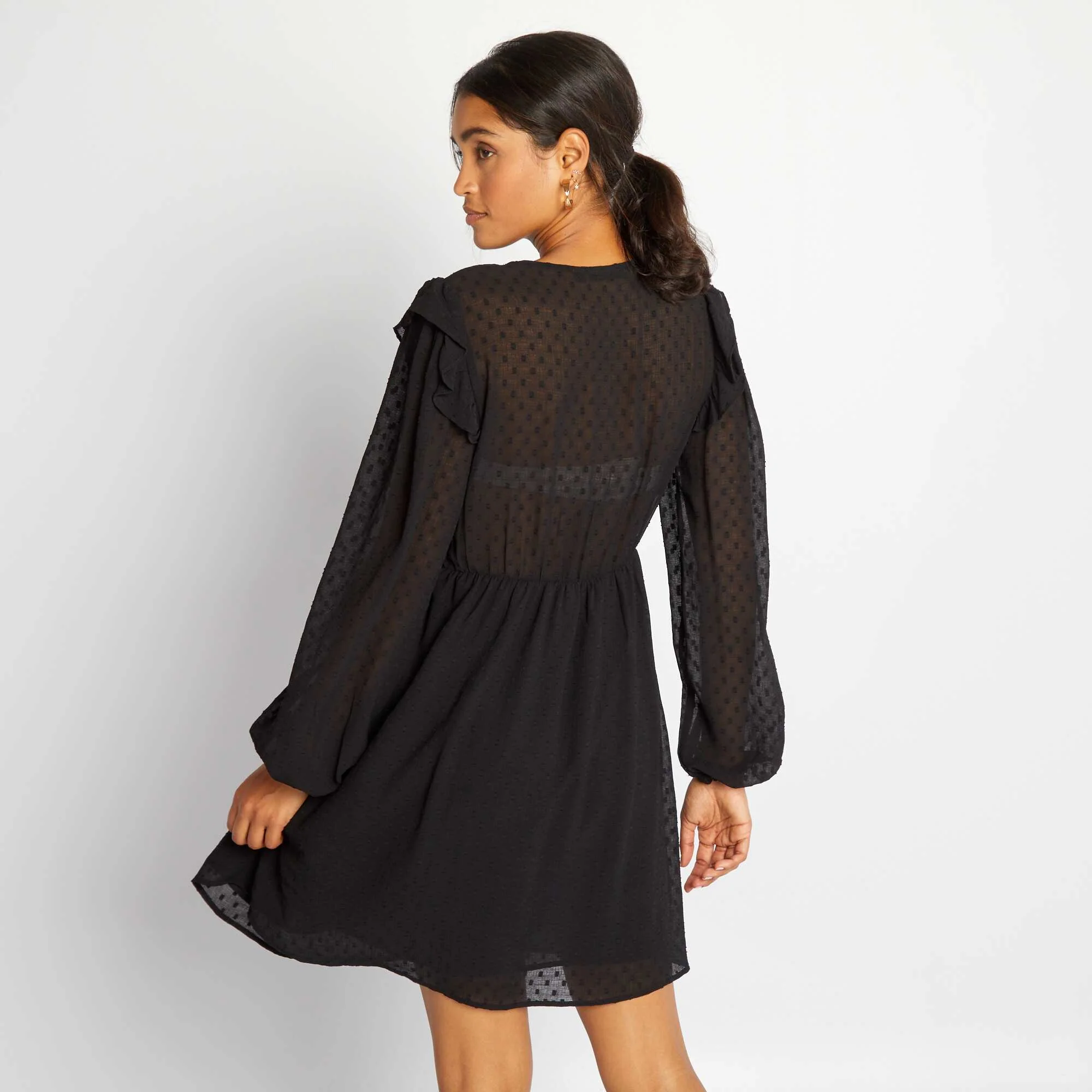 Robe courte à plumetis noir