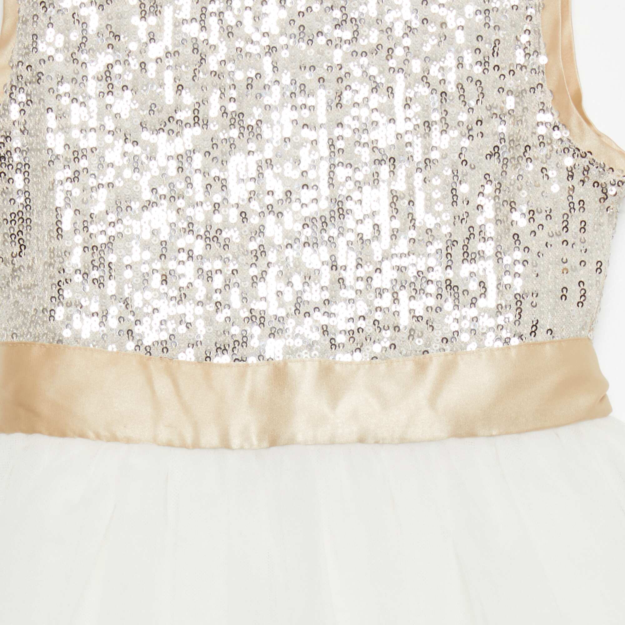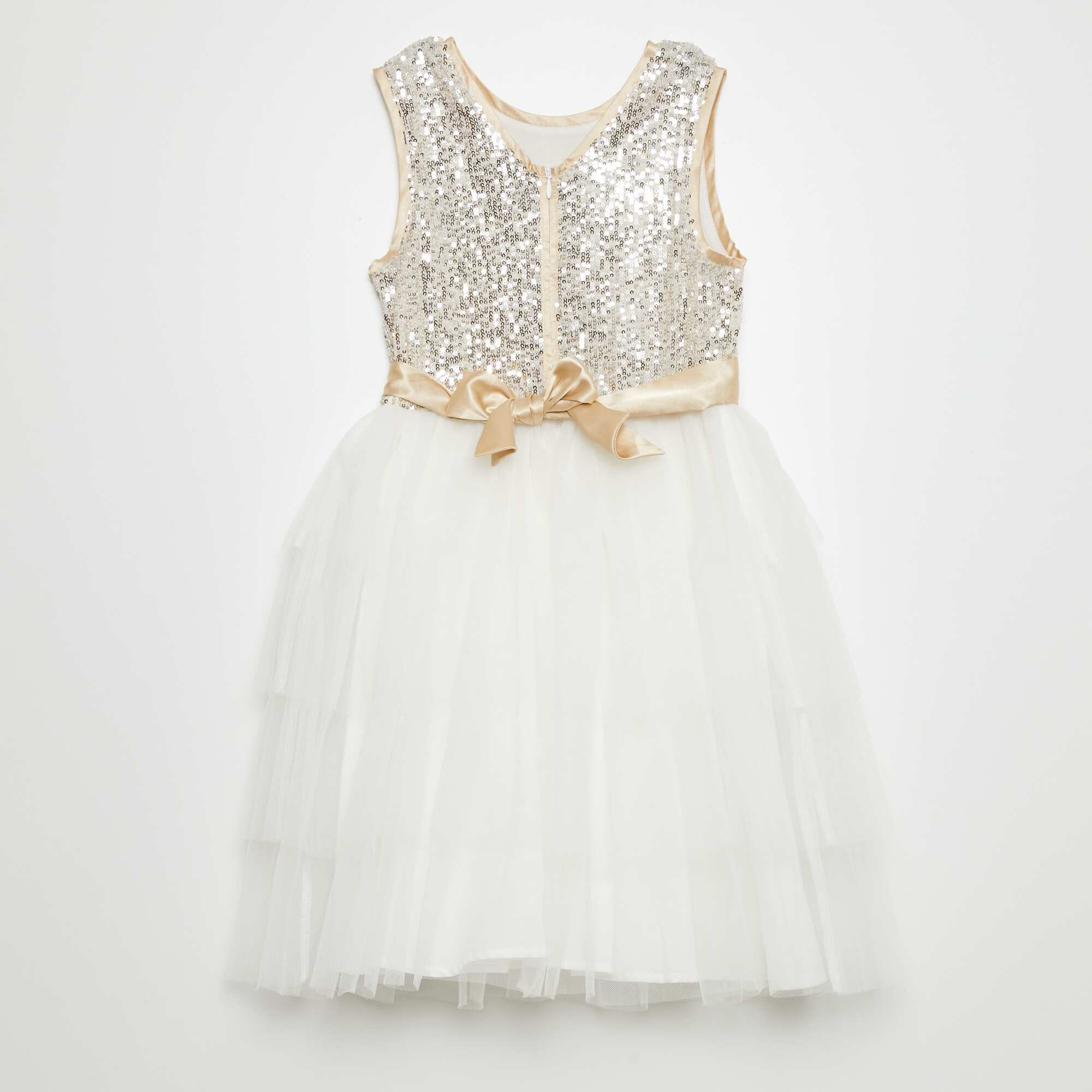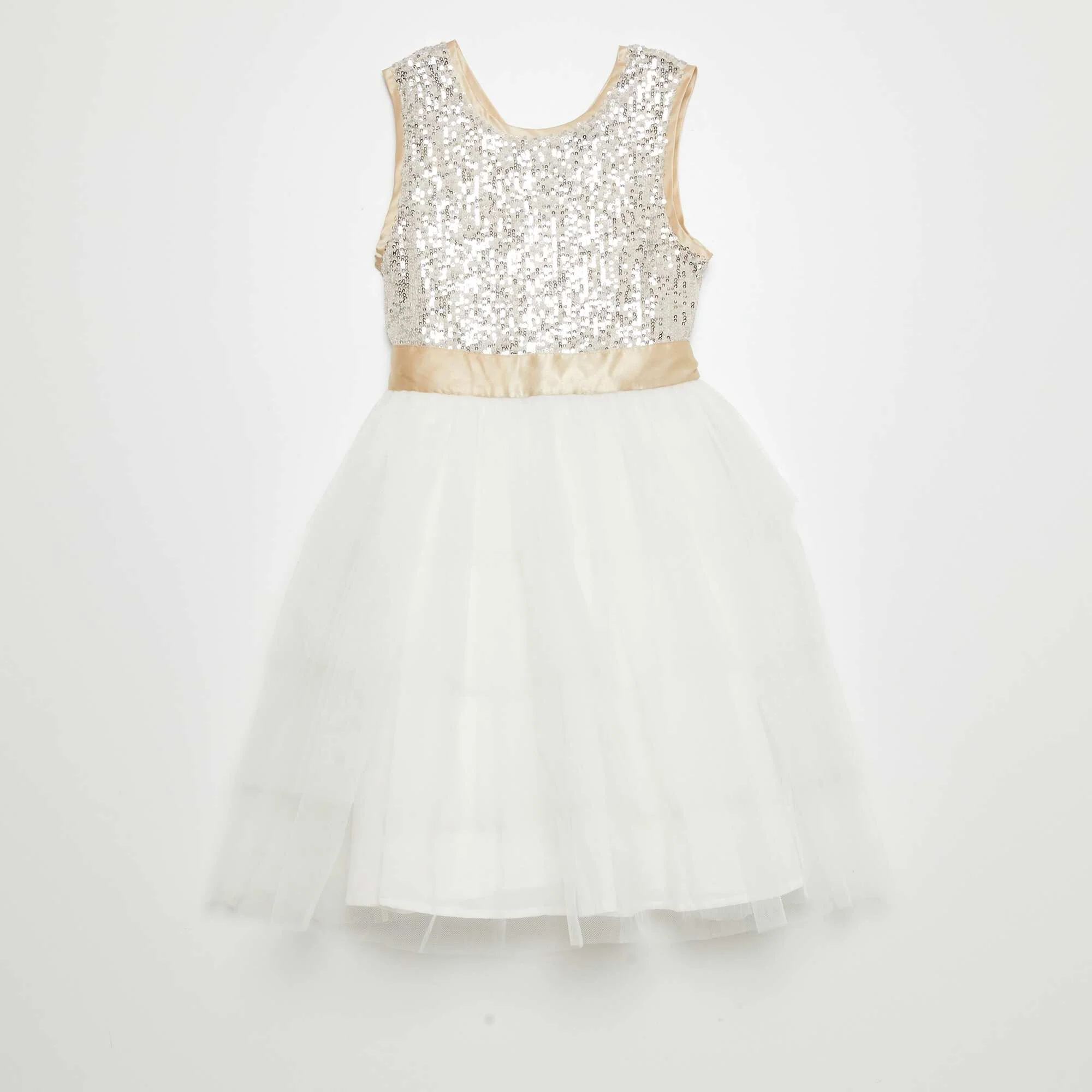 Robe évasée à sequins et tulle Blanc/doré