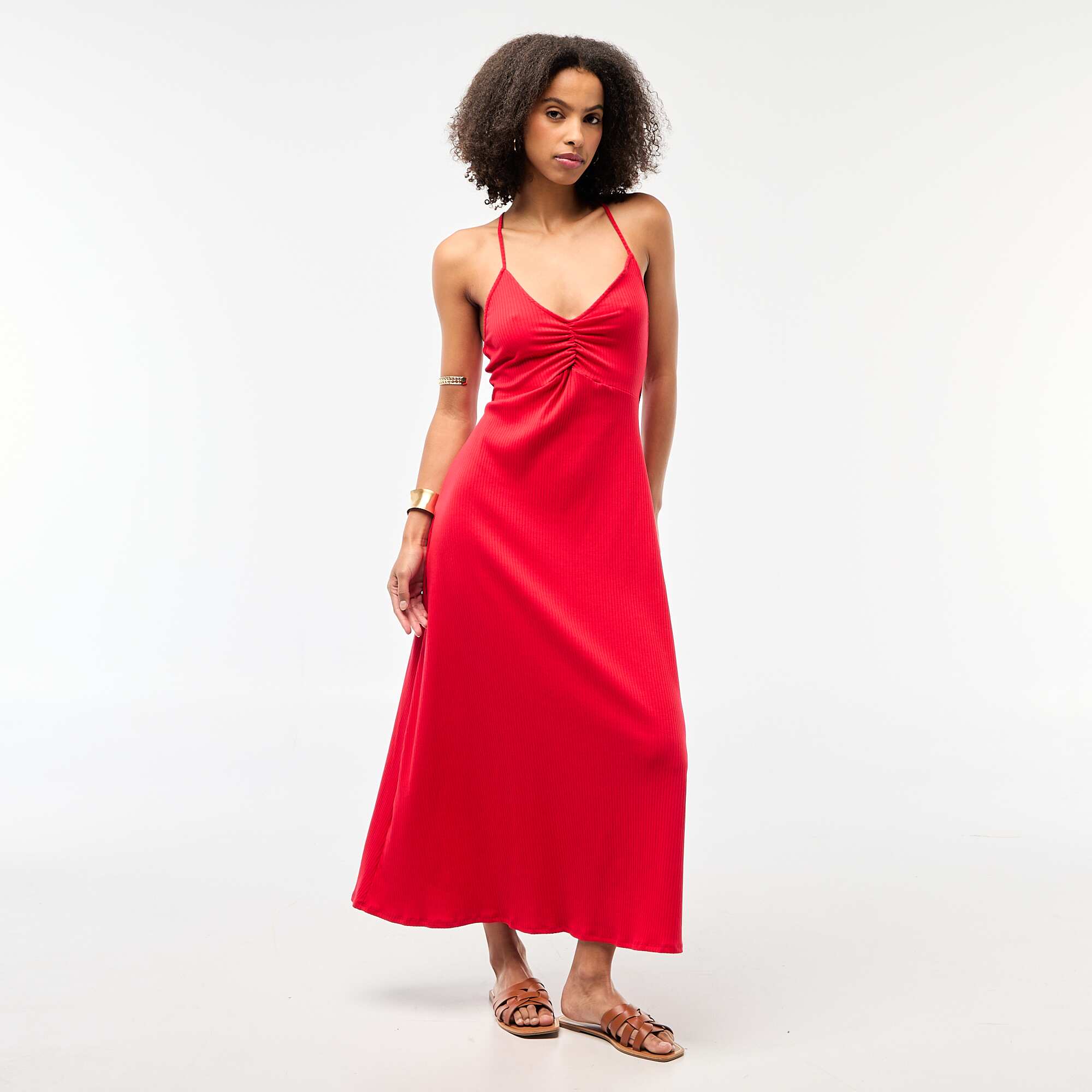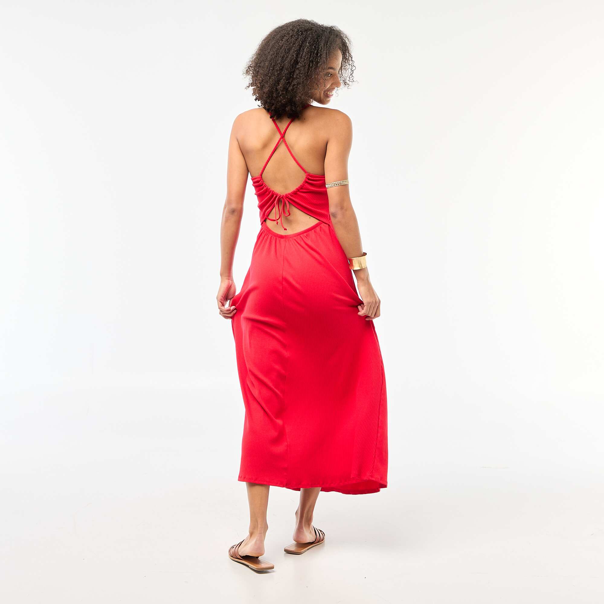 Robe longue à bretelles croisées – Saint Valentin ROUGE