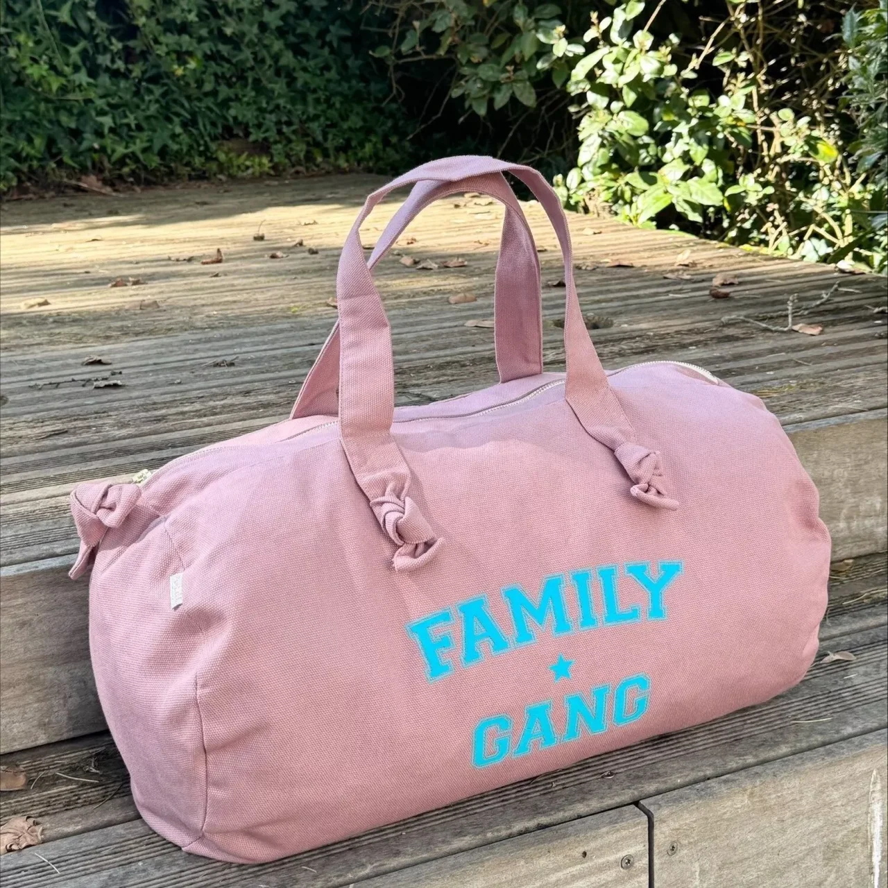 Cet été on sort les grands classiques revisités : on mixe le pep’s des couleurs vives, le confort des essentiels de chez Marcel & Lily et cette petite touche vintage qui fait toute la différence. Notre nouveau sac polochon coloris rose avec son imprimé bleu turquoise “Family Gang” va faire vibrer vos journées ensoleillées.