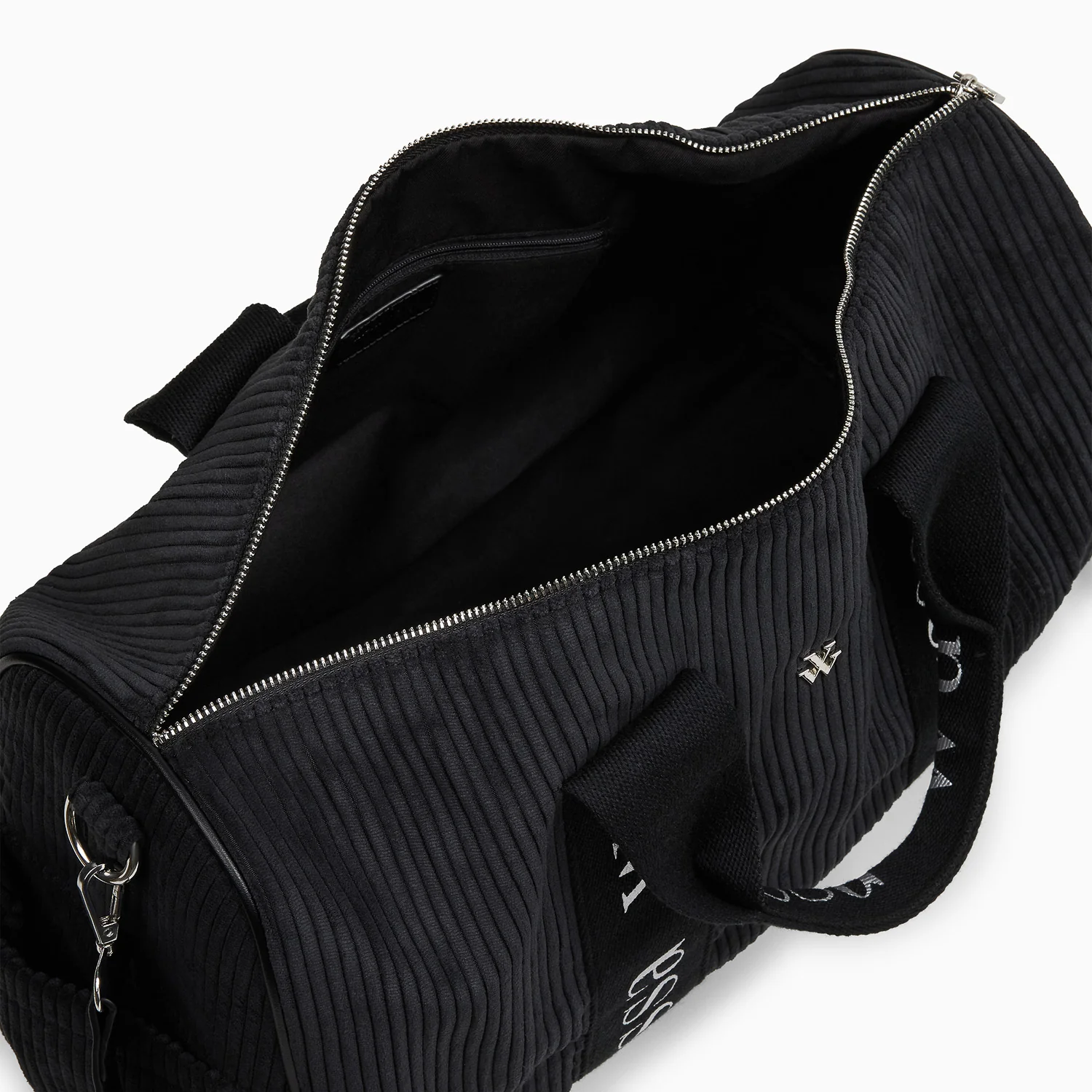 Anses débordantes en tissu noir clair à logo argenté