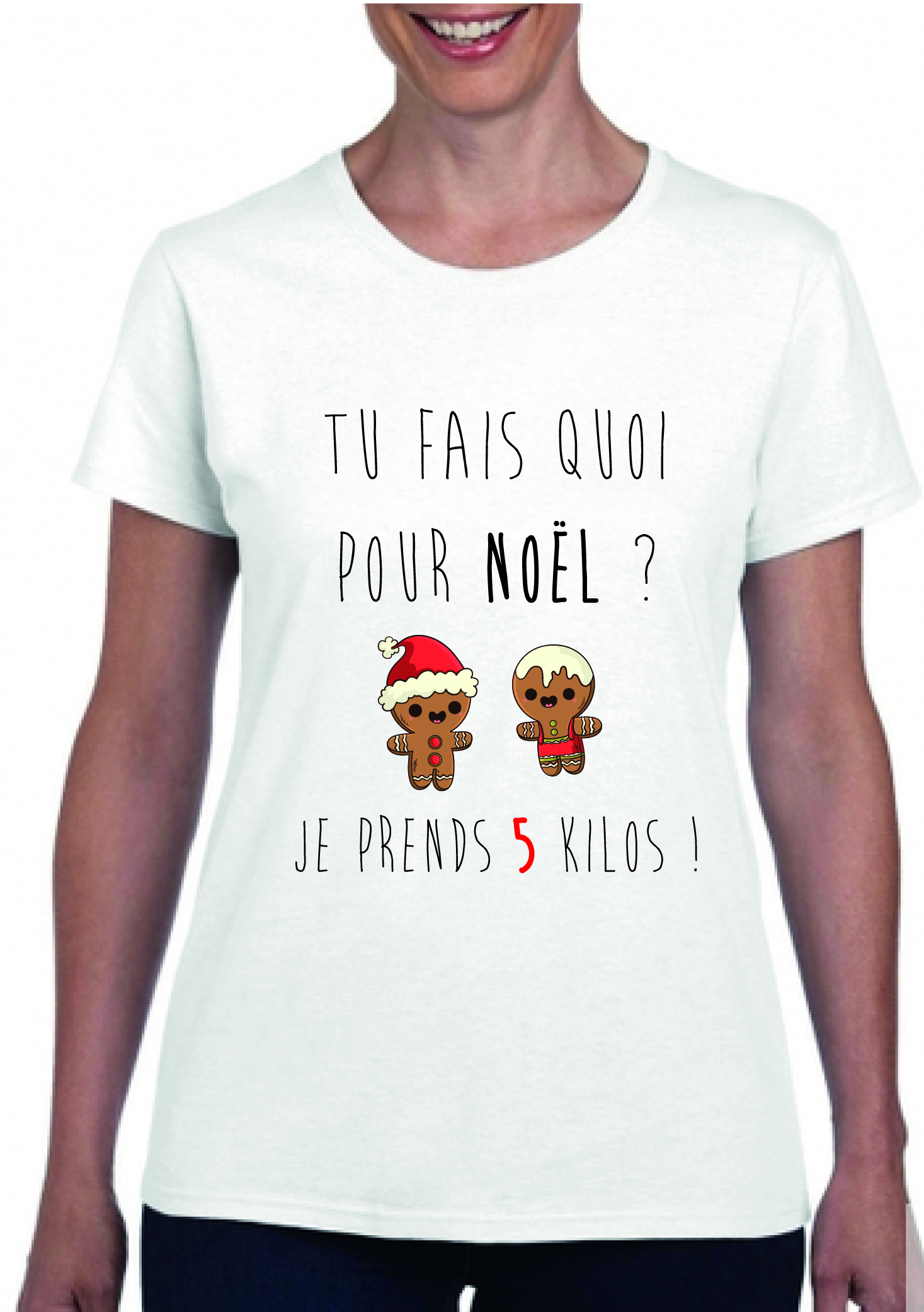 T-shirt Femme blanc NOËL » Tu fais quoi pour Noël ? «