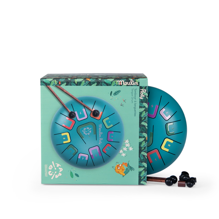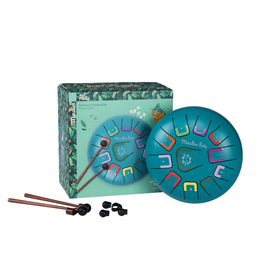 Découvrez le Tambour à la languettes de la collection Dans la jungle de Moulin Roty, un magnifique instrument de musique pour les enfants dès 3 ans. Un magnifique instrument à percussions pour les filles et les garçons. Un instrument à percussion aussi nommé Tongue Drum. Grâce à ses 11 notes, vous allez pouvoir jouer des mélodies relaxantes et envoutantes. Un instrument pour familiariser les enfants aux percussions. 11 notes indiquées par une couleur et un chiffre pour jouer avec les mains, le bout des doigts ou à l’aide de baguettes. Inclus sac de transport, livret de mélodies, 2 baguettes et 4 pics à doigts. Un instrument de…