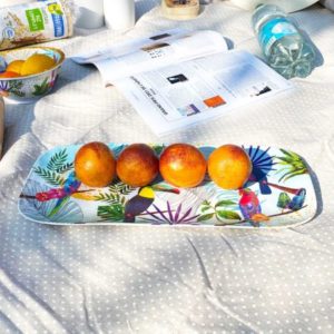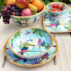 avec l’ensemble de la collection « Toucans de Rio » en mélamine pour