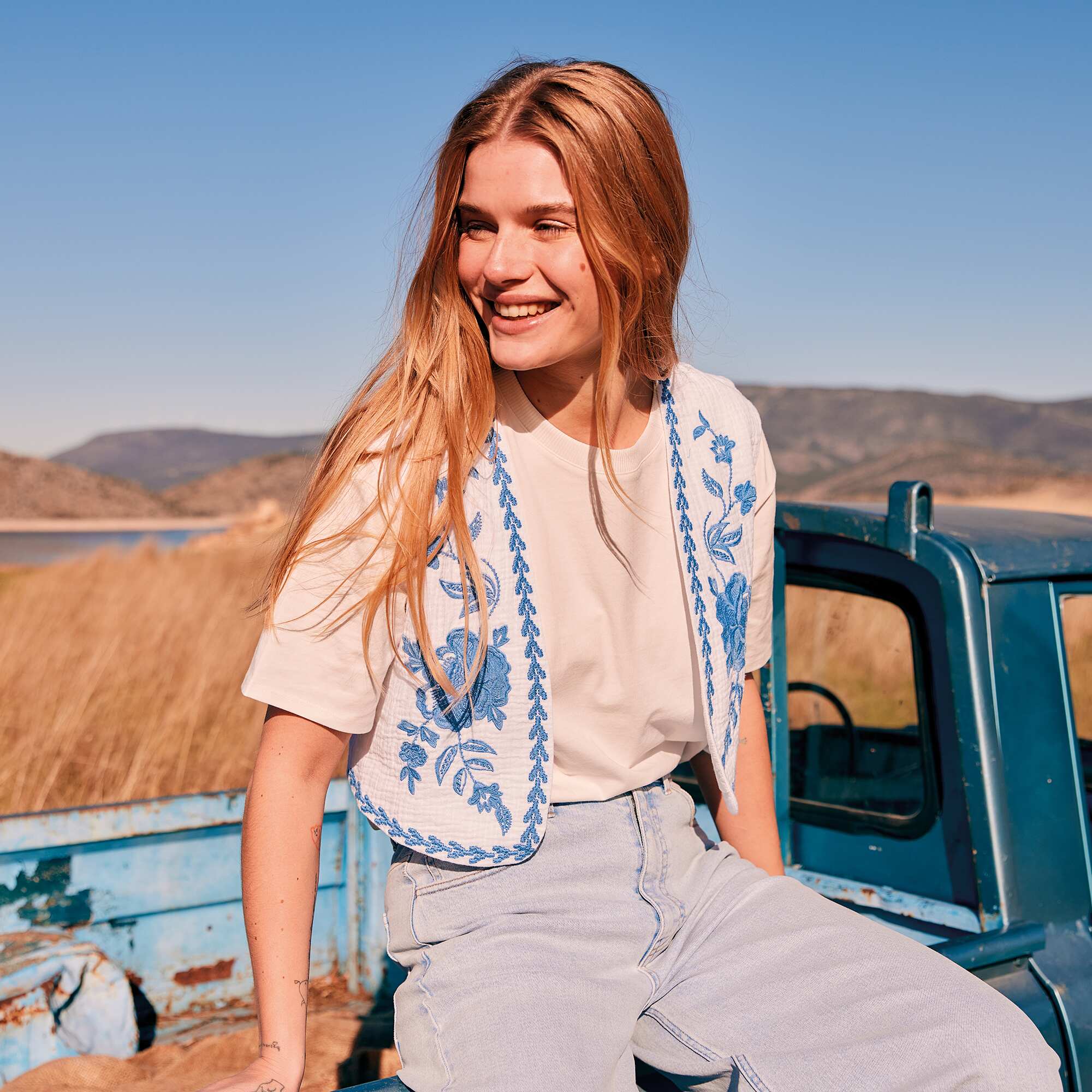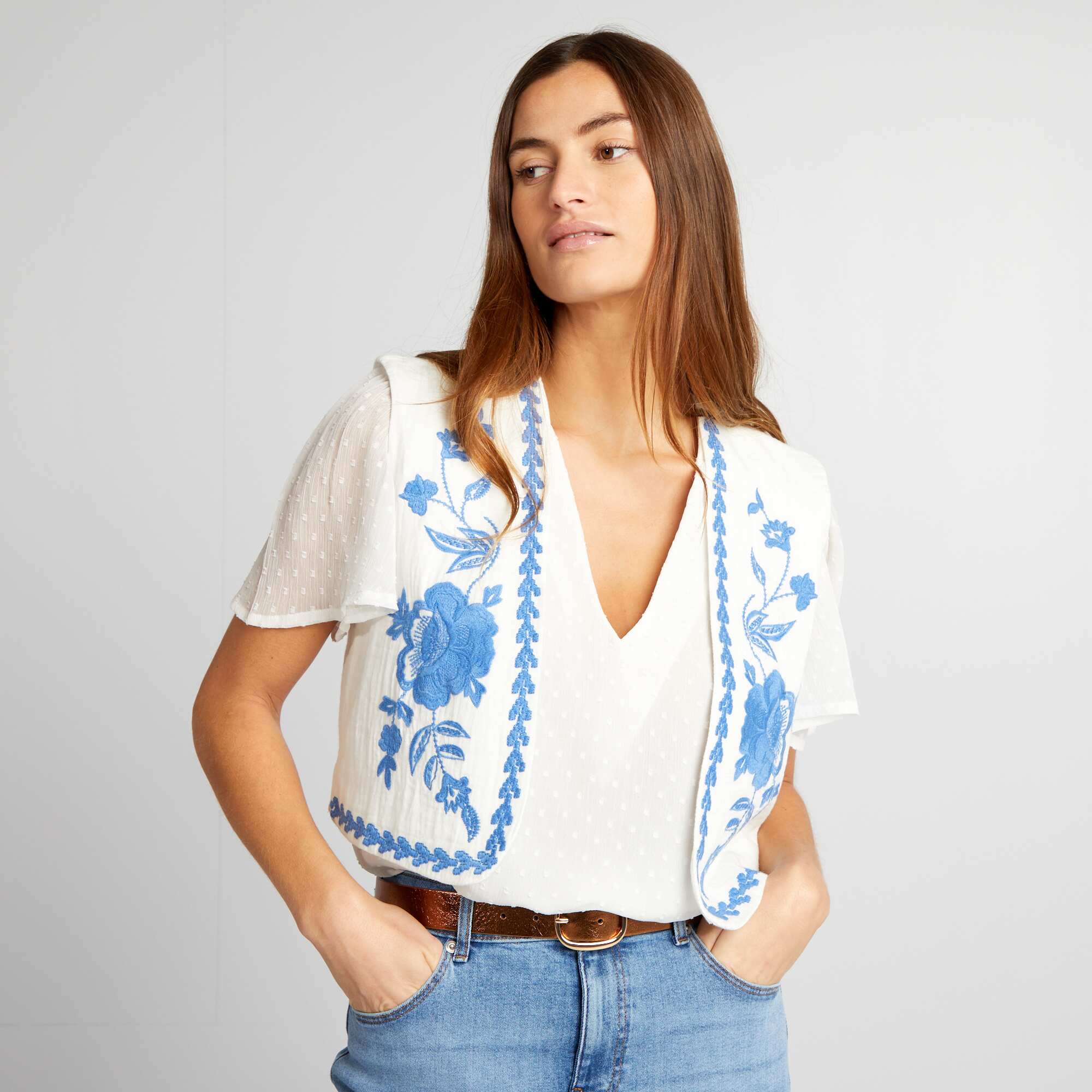 Veste sans manches à broderies Blanc