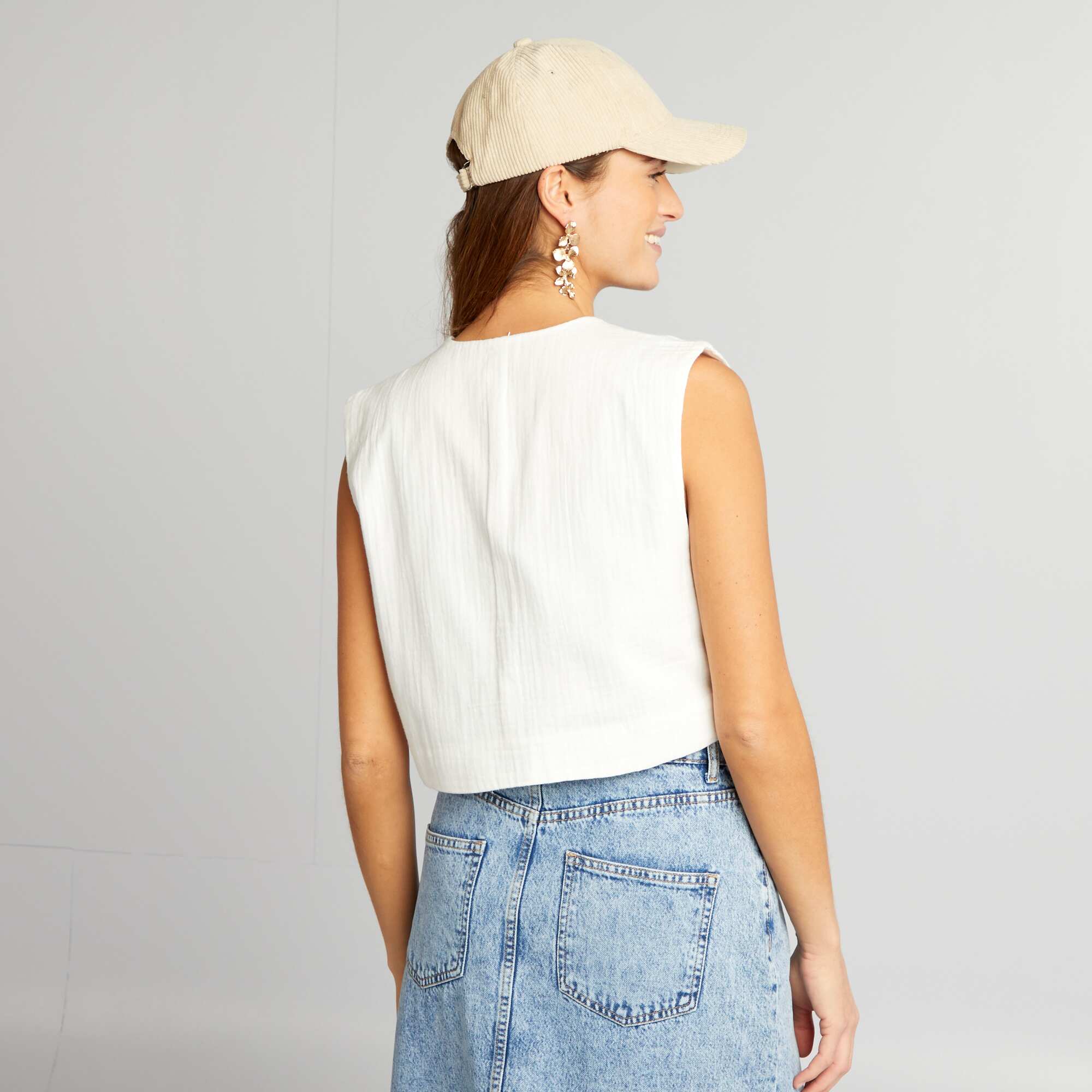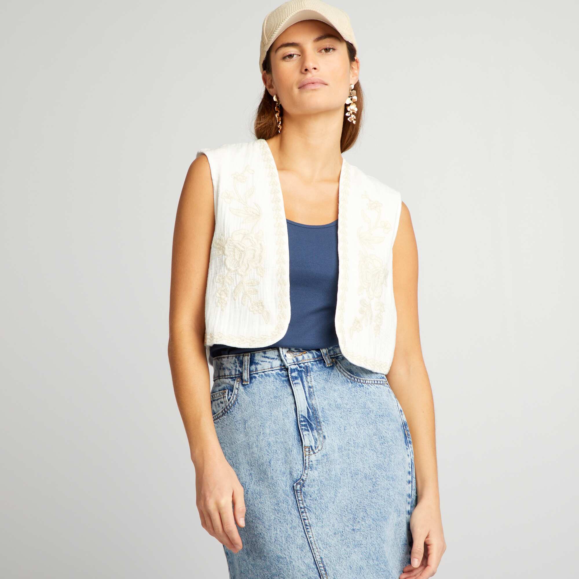 Veste sans manches avec broderies Beige